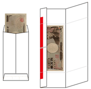 お札の向きは、人物の顔を袋の表側に向けてください。